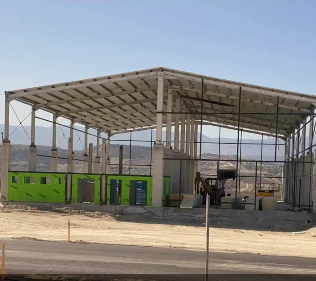 Makaslar ipe 400 Kolonlar hea 360 Çatı aşıkları 60x120x5mm profil Cephe aşıkları 60x80x5mm profil Çatı ve cephe rüzgar çaprazlari 114x3mm boru Kolon makaslar çaprazları cıvatalı sistem çatı ve cephe aşıkları kaynaklı 80′ lik köşebent kulaklara oturmakta aşık aralığı Çatı ve cephede 1.30 cm’dir. Ortalama 140 ton 2386 mt2 yer kapatır