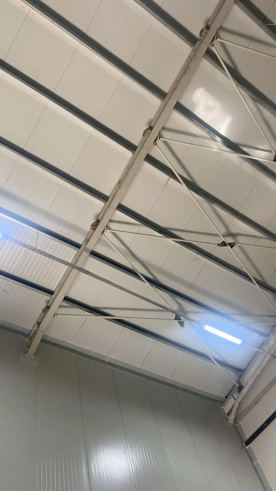 24 mt makas açıklığı 35 mt hol uzunluğu 4 mt kolon yüksekliği Makaslar ipe 300 den açma 450’lik petek Çatı aşıkları 50x100x3mm profil 18 ton yüklemeye hazır Yer Kayseri 840mt2